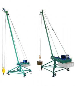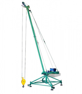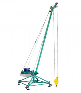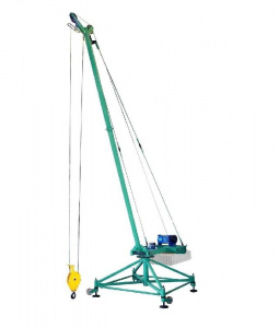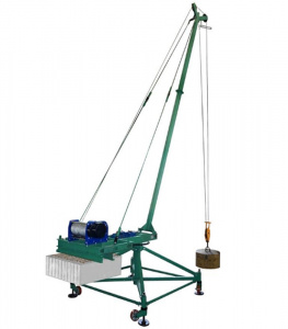 Кран поднимает и перемещает грузы массой до 500 кг на высоту до 100 м. Он обладает скоростью подъема груза 22 м/мин, диаметром каната 6,7 мм и длиной каната 110 м. Поворотная часть крана может поворачиваться на 360 градусов.